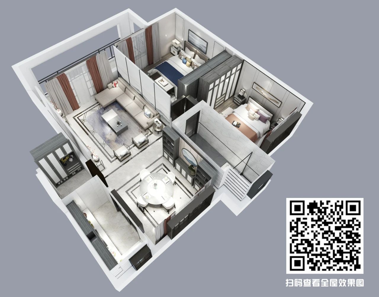 棕灰交相輝映的窗簾首先映入眼簾,