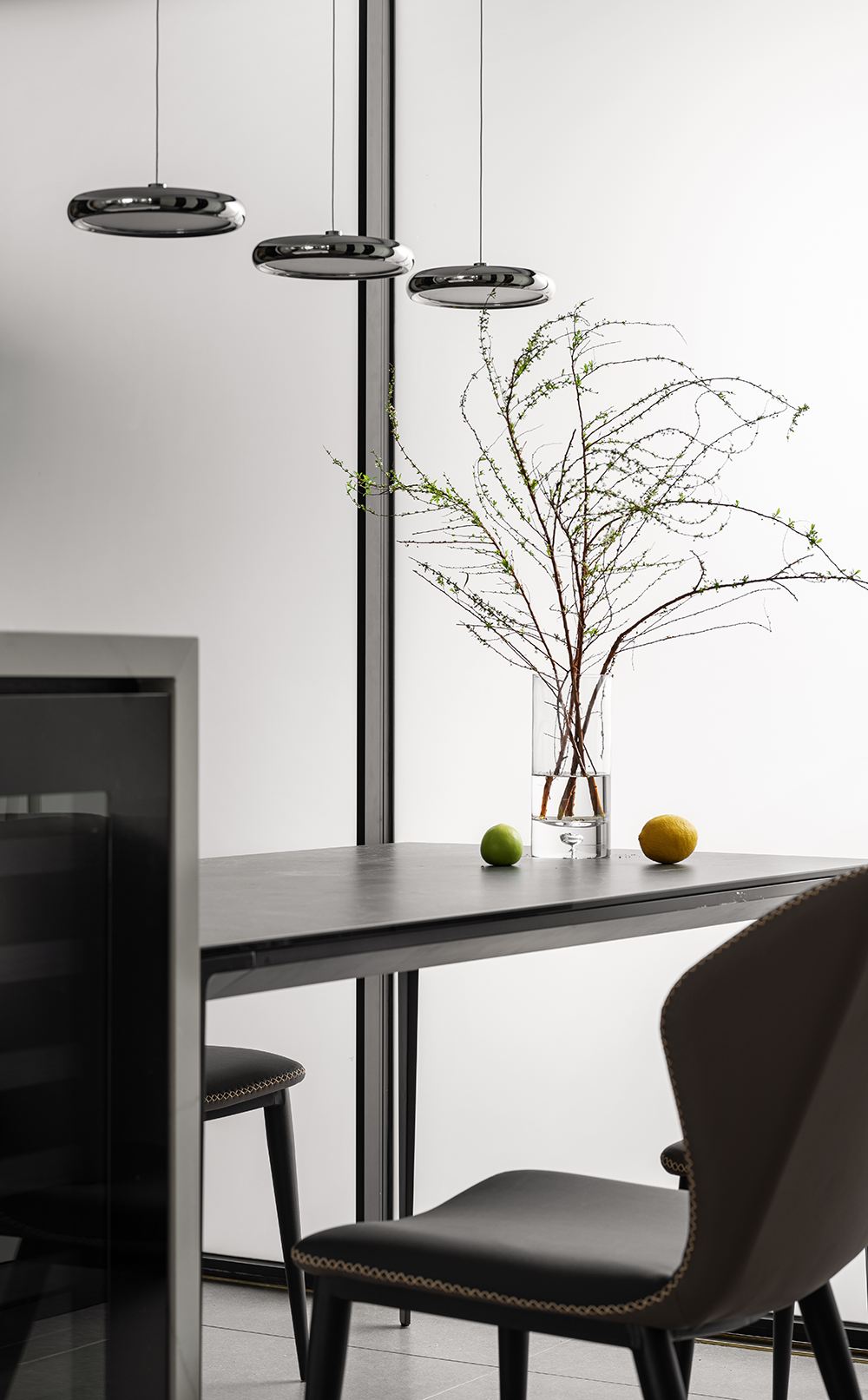 石板餐桌、咖色座椅、極具藝術感的吊燈融匯在整個餐廳設計中,增添了更具時尚感和個性感的格調,餐廳也以它獨有的空間語言延伸至每一頓餐食之中。