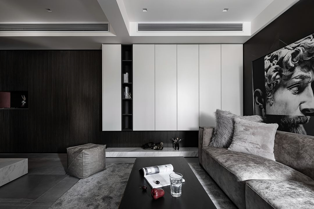 紅與黑是所有色彩搭配中最經(jīng)典的組合。紅的激情熱烈、黑的沉浸冷酷,在碰撞中闡述空間情節(jié),與周圍的白灰搭配,也有了個(gè)性與風(fēng)格。